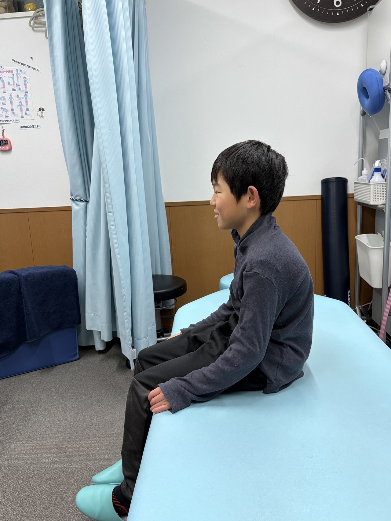 写真のように背中が曲がり、首が前に出ている子供が増えています。今後の成長に大きく関わる姿勢早いうちに対策を!