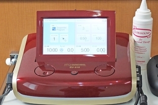 当院ではハイボルテージ超音波治療器を導入しております。この医療機器は筋肉や神経の深い層まで届く電気刺激と、細胞の回復が見込める超音波振動が同時に行える機器です。痛みを抑えケガを早く治す効果があります。